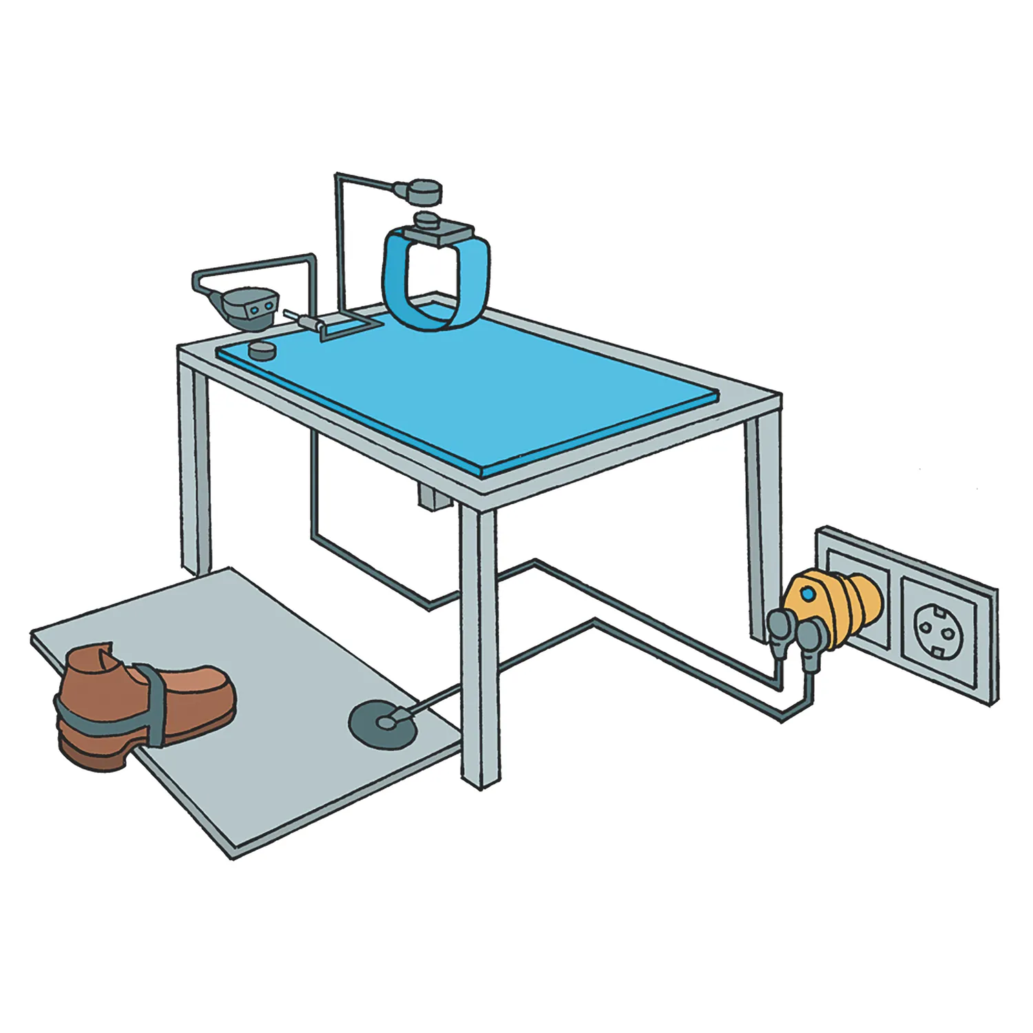 Aceasta suprafata ESD este proiectata pentru a asigura un mediu de lucru fara electricitate statica, protejand atat echipamentele electronice sensibile, cat si personalul. Accesoriile permit conectarea mesei, operatorilor si materialelor conductive la un punct comun de impamantare, realizand un echilibru electrostatic controlat. Astfel, incarcatura statica este descarcata in siguranta catre sol.