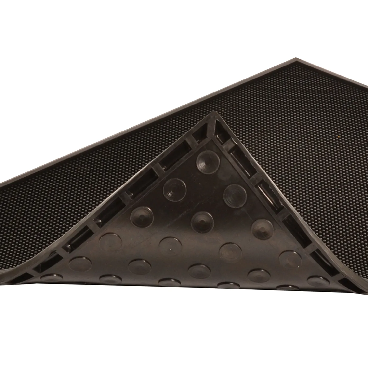 Suprafata cu model diamond plate asigura o aderenta excelenta si permite miscari usoare de rotatie a picioarelor, ideala pentru posturi de lucru active. Covorasul este echipat cu sistem de impamantare complet, incluzand priza mama de 10 mm si cablu de impamantare, oferind protectie impotriva socurilor electrostatice.